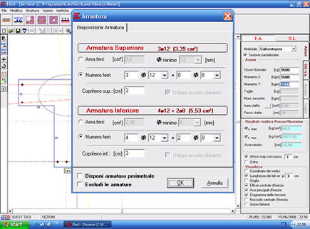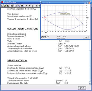Sezioni in c.a. o in materiale omogeneo Questo modulo, dedicato alla verifica di sezioni omogenee e in c.a., permette di effettuare verifiche di resistenza e di stabilità e consente di utilizzare sia il metodo delle Tensioni Ammissibili che quello agli Stati Limite per qualsiasi tipologia di sezione. E' possibile verificare una sezione in campo elasto-plastico a pressoflessione deviata, visualizzare il dominio di resistenza e ottenere il coefficiente di sicurezza per qualsiasi coppia di sollecitazione N, M. CARATTERISTICHE • Sezione di qualsiasi forma. Il contorno della sezione può essere individuato scegliendo da un serie predefinita parametricamente (rettangolare, a T, a C, a L, a I, poligonale, scatolare, ecc...), da un archivio di normalizzate UNI, definite manualmente dall'utente (tramite un miniCAD interno o per coordinate) o importate da file DXF. • Inserimento delle armature. E’ possibile introdurre le armature singolarmente per coordinate, per numero di diametri o per area totale e disporle sul perimetro della sezione o su due lati. • Visualizzazione delle proprietà elastiche. Si può scegliere di visualizzare i diagrammi delle tensioni normali e tangenziali, la posizione dell’ellisse d'inerzia, gli assi principali e il nocciolo centrale d'inerzia. Sono inoltre mostrati la posizione dell’asse neutro, le tensioni massime e, al passaggio del mouse, i valori delle tensioni puntuali nei vertici della sezione e nelle singole armature. Infine, nel campo degli Stati Limite, è visibile il dominio di rottura N-M. • Verifiche. E’ possibile effettuare sia verifiche di resistenza che verifiche di stabilità per sezioni sottili. • Esportazione DXF. Qualsiasi sezione è esportabile, insieme con tutti gli elementi grafici visualizzati, in formato DXF. • Relazione di calcolo. Viene esportata in formato RTF ed include le caratteristiche geometriche ed elastiche della sezione nonché lo stato tensionale e le risultanze delle verifiche effettuate secondo le Tensioni Ammissibili o gli Stati Limite. |